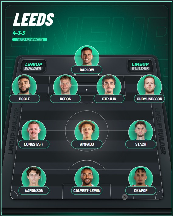Leeds har börjat säsongen okej. Vann premiären mot Everton och spelade 0-0 mot Newcastle. De senaste matcherna har resulterat i vinst mot Wolves och oavgjort hemma mot Bournemouth, som kvitterade på tilläggstid. De är obesegrade hemma så det är ett bra Leeds med självförtroende vi kommer att möta på Elland Road på lördag. Tränaren Farke har gjort ett gediget jobb sedan han kom in efter degraderingen till Championship. Första året föll de på målsnöret i playoff mot Southampton. Förra säsongen slutade i direktuppflyttning till PL. På spelarsidan har de inte den vassaste truppen. Calvert-Lewin som kommit in från Everton har definitivt spetsat truppen och har fått en bra start på säsongen. Sean Longstaff från Newcastle bidrar med stabilitet på mitten. Även Stach från Hoffenheim och Okafor från Milan bidrar i offensiven. Sedan har vi ju svenske Gabriel Gudmundsson som tagit en ordinarie plats till vänster i försvaret. Daniel James är skadad och kommer inte till spel. Samma gäller italienaren Wilfried Gnonto som dras med en vadskada. Okafor och Aaronson har kommit in i anfallet och gjort det bra. I övrigt förfogar tränare Farke i princip över en full trupp.