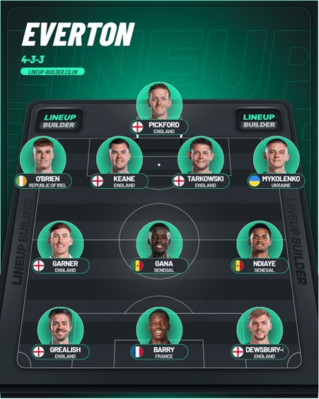Jarrad Branthwaite och Nathan Patterson är skadade, i övrigt är Everton ordinarie och kan mönstra en ganska stark uppställning