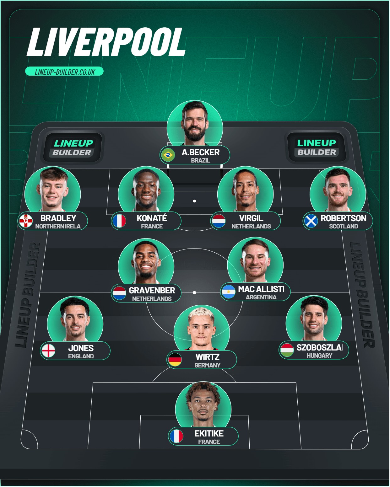 Det skall dock understrykas att Liverpool har underpresterat rejält under hösten, snacket kring Salahs vara eller icke vara, Isaks hittills misslyckade säsong och ett försvarsspel som varit allt annat än godkänt har satt sina spår i både tabell läget och laget. Liverpool har dock hämtat sig på sistone då de har fem matcher i följd utan förlust. Något som ändå talar emot vinst för Liverpool är att Szoboszlai är tveksam till spel (kommer testas sent, men man hoppas han är redo för match) och Gapko är skadad, båda är viktiga spelare för Liverpool då de har presterat bäst hittills under säsongen. Detta ger ändå Tottenham en klar fördel om dessa inte kommer till spel. I övrigt är även Endo och Joe Gomez skadade, Salah är ju numera borta pga AFCON, men både Frimpong (skada) och Bradley (avstängd) är åter klara för spel. Förslag på uppställning för Liverpool: