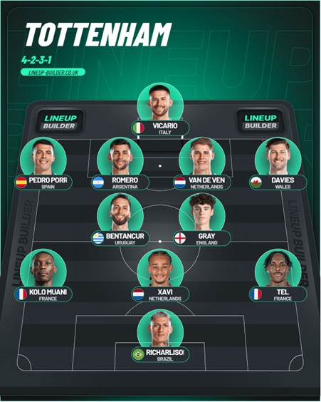 Kudus är inte tillgänglig efter ljumskskada i senaste matchen. Solanke har börjat träna med laget men fortfarande för rostig för att kunna spela. Inga nyheter om Kulusevski. Udogie är i träning och med i matchtruppen. Bergvall i full träning men får kanske vänta ytterligare några dagar på att starta en match? Simons är tillgänglig igen efter tre matchers avstängning. Sarr och Bissouma fortfarande upptagna av AFCON.