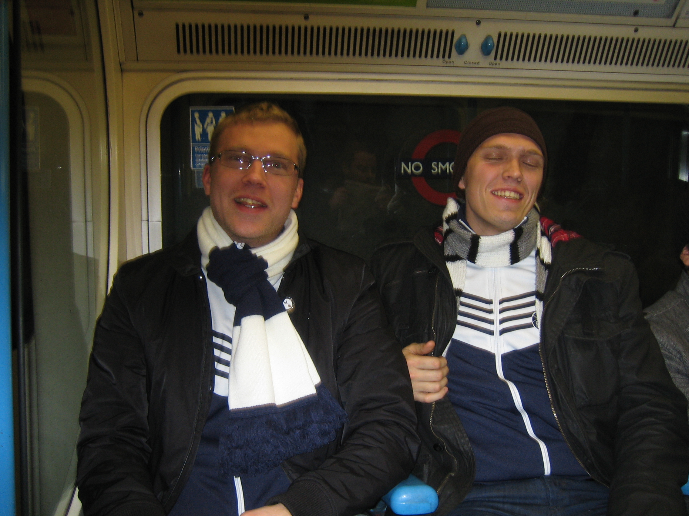 Håkan Peleback (London_Calling) och Rikard Redin (SpursHero) på tåget från WHL